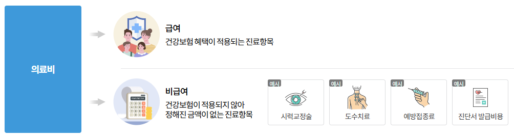 건강보험이 다양한 종류의 의료를 보장하지만 일부 치료, 검사, 의약품은 포함되지 않습니다. 국민건강보험이 적용되지 않기 때문에 이를 비급여 진료비라고 합니다. 즉, 환자가 비급여 진료비 전액을 지불해야 함을 의미합니다.