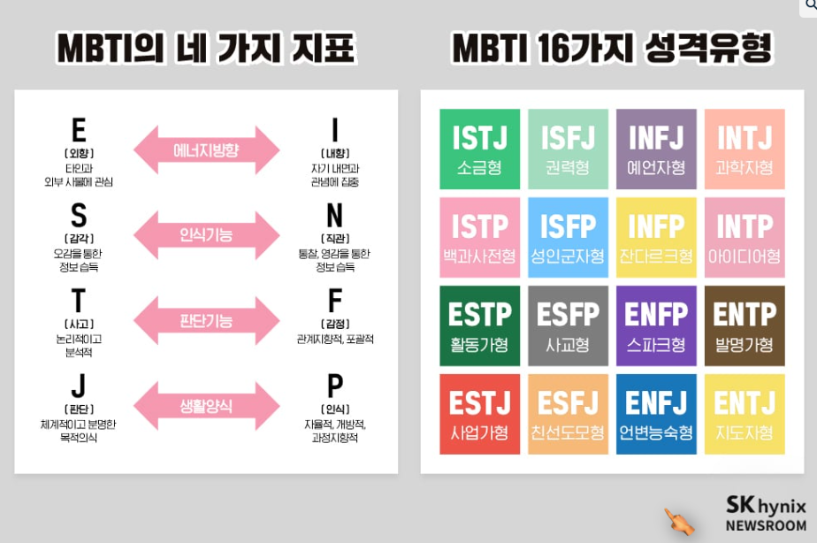 마이어스-브릭스의 성격유형검사(Myers-Briggs Type Indicator: MBTI)는 융의 심리 유형론에 근거하여 인간의 성격을 열여섯 가지로 분류한 성격 유형 선호지표로서 자신과 타인의 성격 역동을 이해하는 데 아주 유용하게 쓰이는 도구다. 이 검사는 외향(E)-내향(I), 감각(S)-직관(N), 사고(T)-감정(F), 판단(J)-인식(P)의 네 가지 차원에 근거해 사람들의 성격 유형을 다양하게 분류한다. MBTI는 최근에 여러 분야에서 폭넓게 활용되는 검사로 그 활용 목적에 따라 교육장면, 상담장면, 산업장면, 팀 빌딩, 의사소통 훈련, 갈등 관리, 문제 해결 훈련 등 다양한 장면에서 이용될 수 있다.