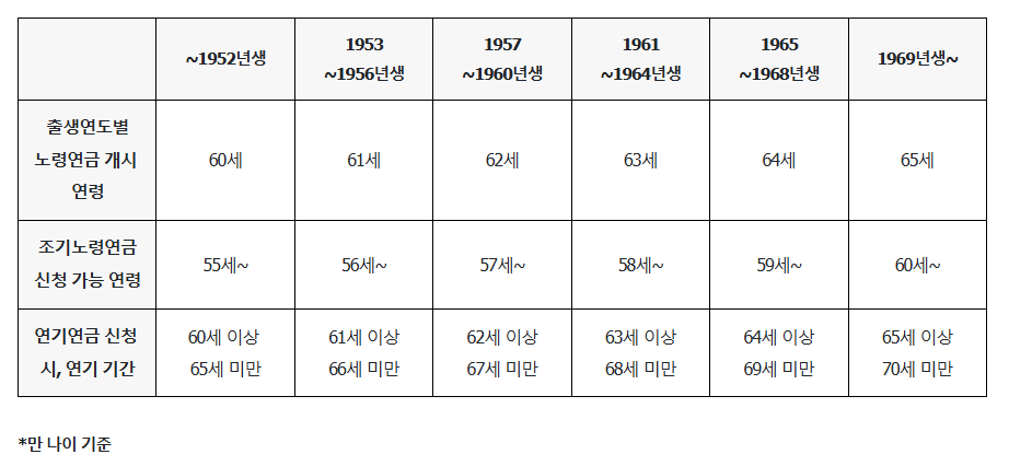 1953년생 이후: 61세~65세 연기 시작하여 연기 종료는 66세~70세