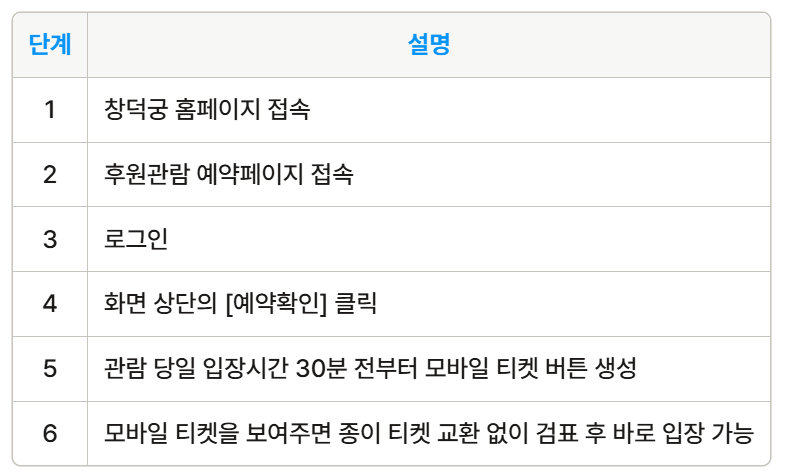 ○ 예매 사이트 : 창덕궁 공식 예약 사이트에서 온라인으로 예약