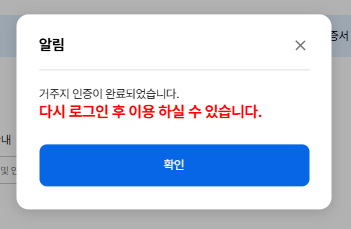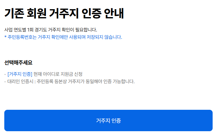 회원가입 시 최초 거주지 인증 완료(다음 해부터 매년 1분기에 거주지인증 필수)