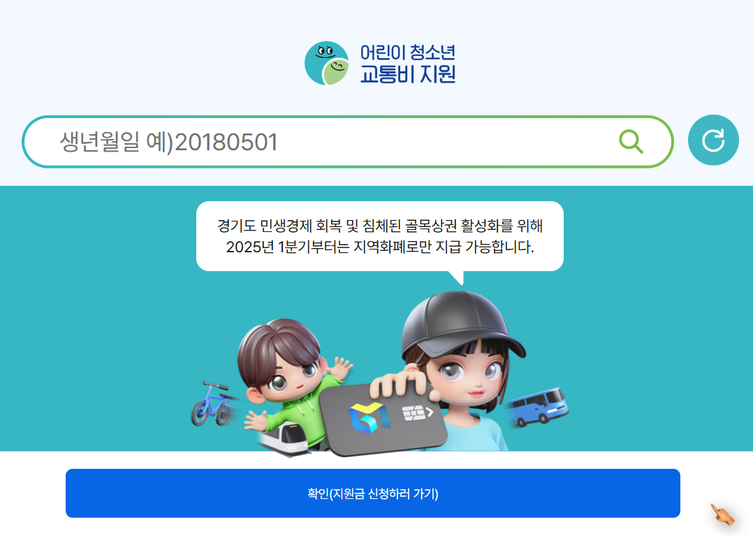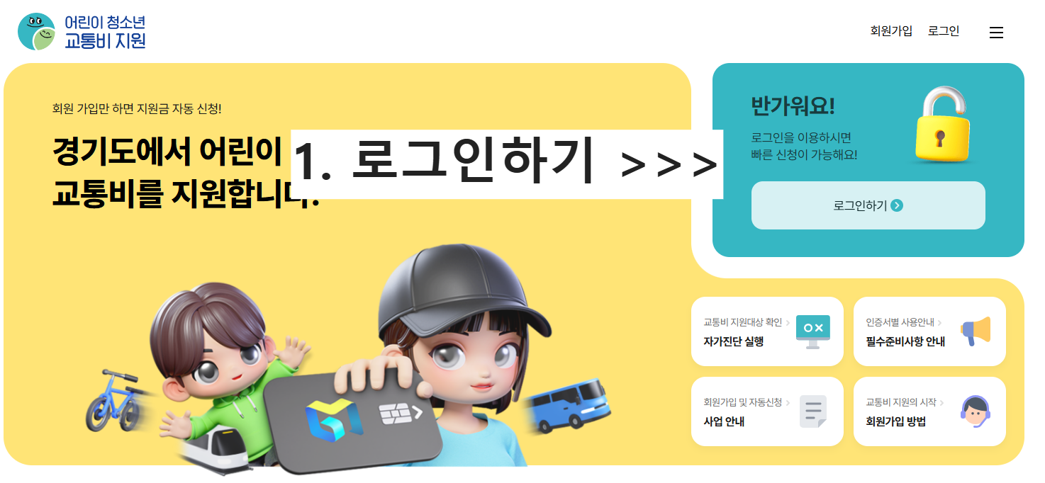 경기도 어린이 청소년 교통비 지원금 신청하기