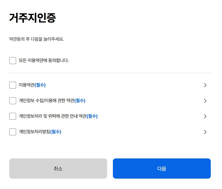 ※ 거주지 인증 : 간편, 금융, 공동 인증서로 인증