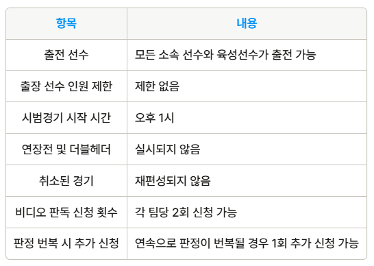 시범경기 규정 안내