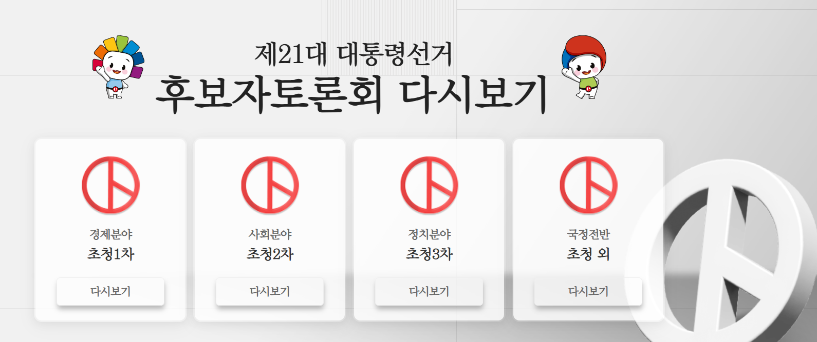 - 비초청 후보는 좌식 방식으로 주제별 질문 후 마무리 발언까지 간단히 구성